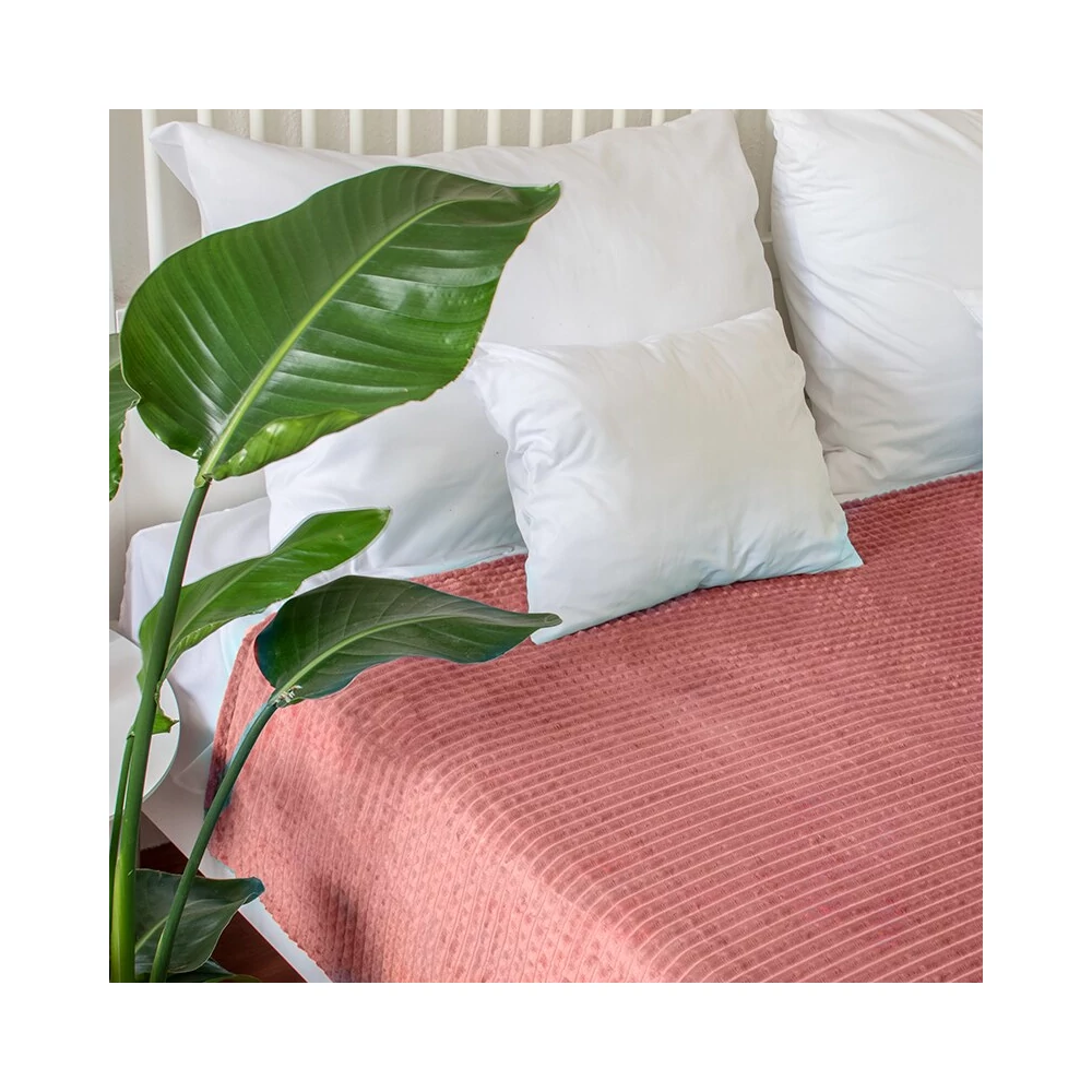A 100% poliészterből készült takaró különlegesen puha tapintású, kellemes érzetet biztosít a bőrön, miközben megfelelő meleget nyújt a hűvösebb napokon. A bordázott kialakítás nemcsak esztétikus megjelenést kölcsönöz, hanem fokozza a takaró puhaságát is.