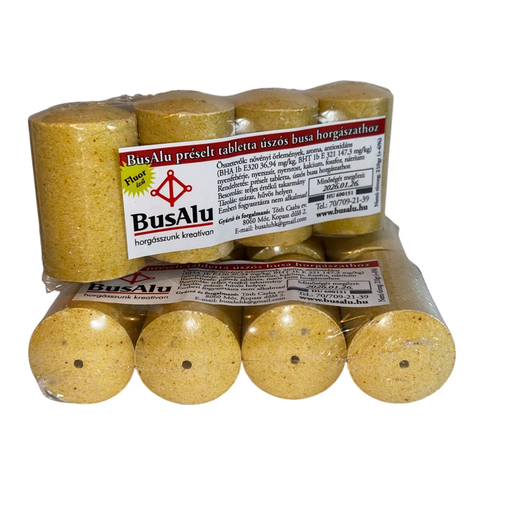 Az új, nagyobb méretű BusAlu busázó plankton tabletta ideális választás a busahorgászat szerelmeseinek. A fluor ízesítésű csalitabletta különleges összetételének köszönhetően extra felhősödést biztosít a vízben, ami hatékonyan vonzza a busákat a horgászhelyhez.