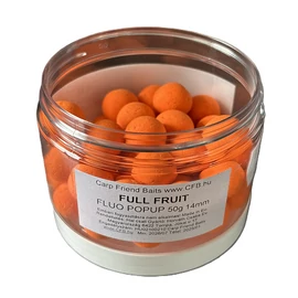 A CFB Fluo PopUP bojlik élénk színükkel és intenzív aromájukkal kiemelkednek a horgászcsalik közül. A Full Fruit ízesítésű, 14mm-es méretű lebegő bojlik különösen hatékonyak a nagyobb pontyok megfogásában.