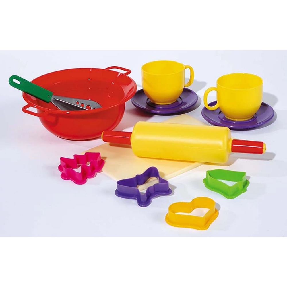 Ez a színes cukrász készlet tökéletes választás azoknak a gyermekeknek, akik szeretnék felfedezni a konyha varázsát és megtanulni a sütés alapjait. A készlet minden eszközt tartalmaz, ami a tésztakészítéshez szükséges: tésztanyújtót, keverőtálat, különféle formájú kiszúrókat és még csészéket is a tálaláshoz.