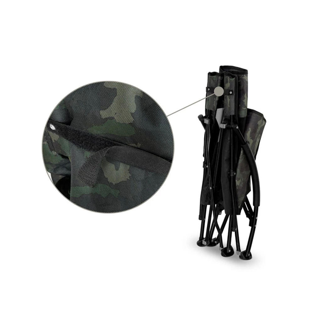 Az alacsony ülésmagasság ellenére meglepően kényelmes, strapabíró 600D szövettel készült, amely hosszú élettartamot biztosít. A szék egyedi megjelenését a szabadalmaztatott BANX álcázóminta adja, amely nem csupán esztétikai elem, hanem Európa legismertebb horgászvizeit ábrázoló különleges térképmintázat.