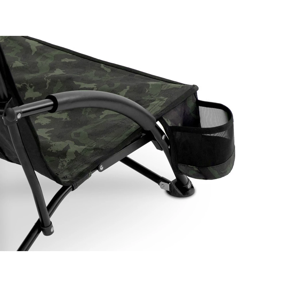 Praktikus kiegészítői között megtalálható az oldalsó zseb italok vagy kisebb tárgyak tárolására, a habszivaccsal borított karfa a nagyobb kényelemért, valamint a hálós háttámla a jobb szellőzés érdekében. A szék 120 kg-os teherbírással rendelkezik, és mindössze 2,9 kg súlyú.