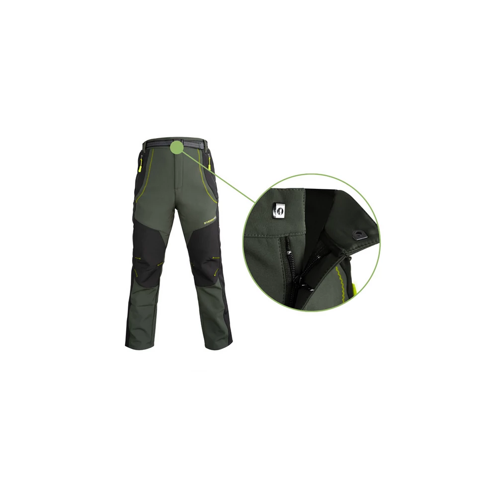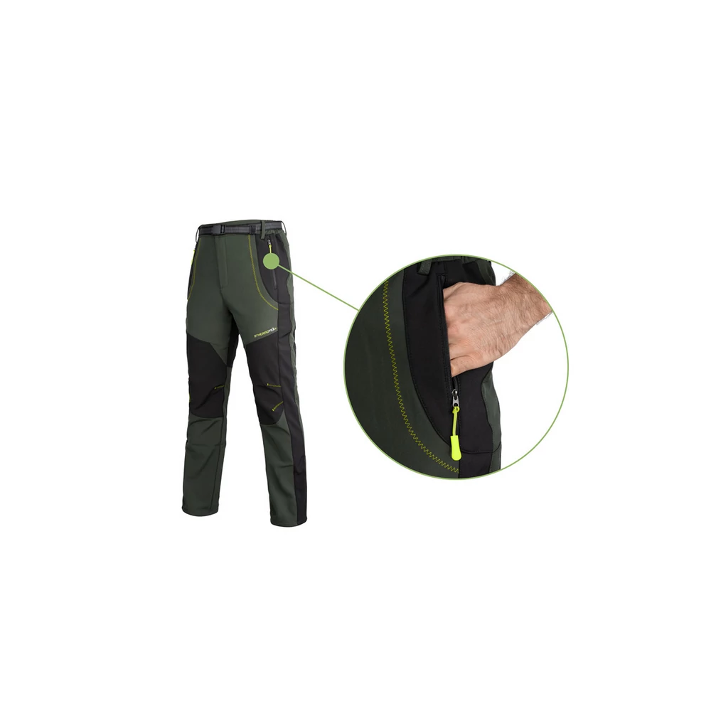 A praktikus kialakítás két cipzáras oldalzsebbel és egy hátsó zsebbel rendelkezik, míg a derékrész fémcsattal és erős cipzárral záródik. A nadrág belsejét meleg polár réteg borítja, amely kellemes hőérzetet biztosít a hidegebb hónapokban is, miközben az enyhén rugalmas anyag tökéletesen illeszkedik különböző testalkatokhoz.