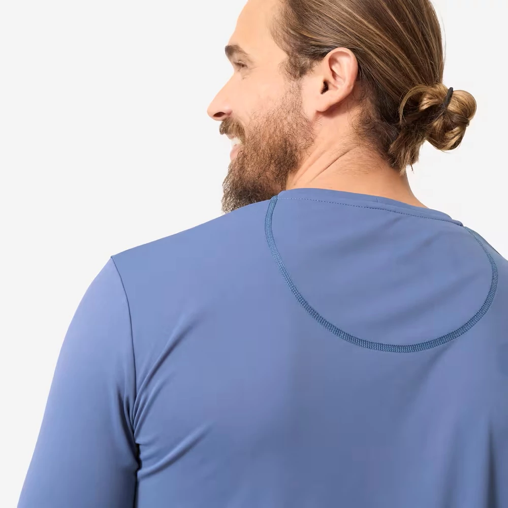 Ez a hosszú ujjú UV-szűrős póló kiváló védelmet nyújt a káros napsugárzás ellen akár a vízben is. Kifejezetten egy óránál rövidebb ideig tartó szörfözéshez, meleg vízben történő használatra tervezték.