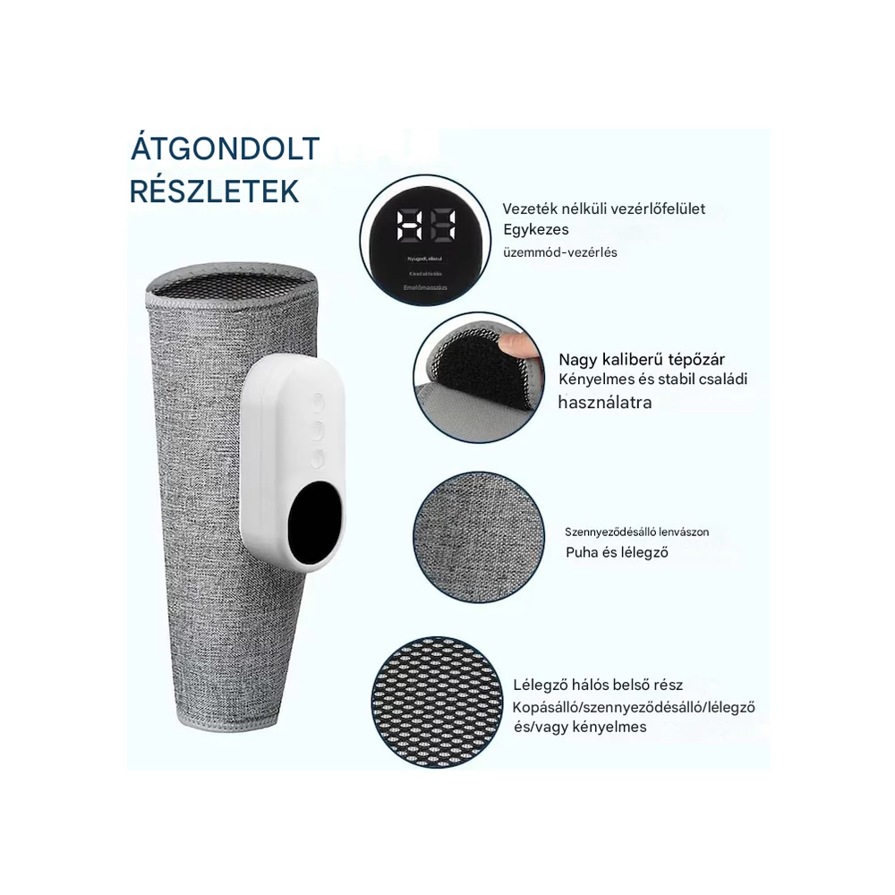 - Három funkció egyben: légpárnás kompresszió, melegítés és vibráció a maximális hatékonyságért
