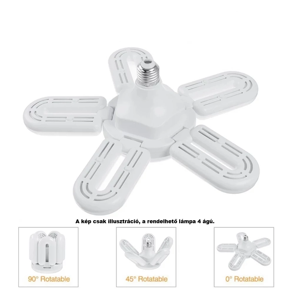 Ez az egyedülálló, ventillátor formájú LED izzó forradalmasítja a beltéri világítást a négy külön állítható paneljével, amelyek lehetővé teszik a fény precíz irányítását. Az E27-es foglalattal rendelkező izzó könnyen beilleszthető a legtöbb standard lámpatestbe.