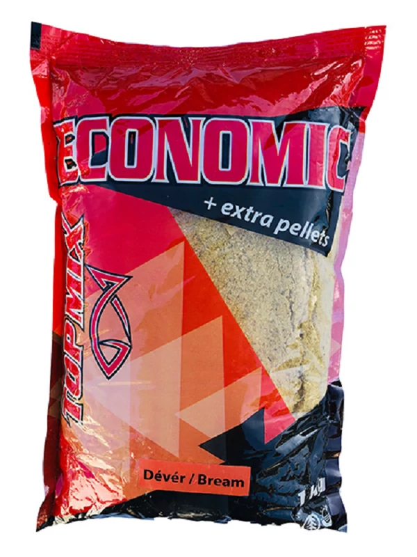 A TOP MIX ECONOMIC Dévér etetőanyag kifejezetten keszeg horgászathoz kifejlesztett, gazdaságos megoldás, amely édes fűszeres aromájával és sárgás színével vonzza a célhalakat. Az extra pelletekkel dúsított keverék biztosítja a hosszan tartó csábító hatást a vízben.